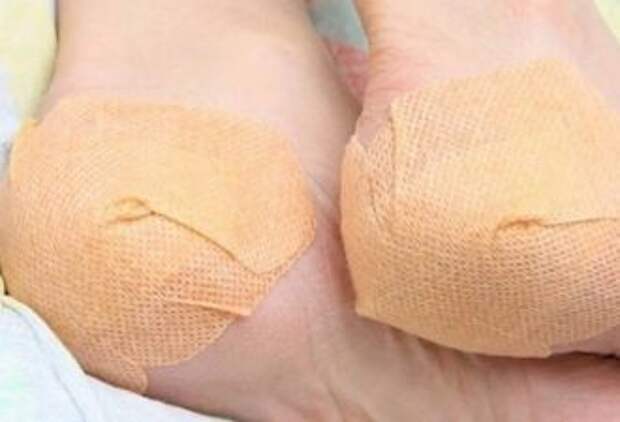 Вечером распарить ноги, потом насухо их вытереть, сделать компресс на пятки из этой смеси и тепло укутать ноги до утра. Утром все убрать.