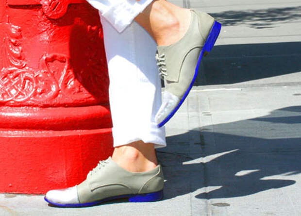 Кстати, модницы уже смекнули, что тратиться на новые оксфордские ботинки вовсе не стоит, а можно сделать обновление самим. Вы тоже догадались? Да, мы можем просто покрасить подошву своих ботинок. Для этого потребуется бумажный скотч, а также акриловая краска. Сначала надо заклеить ботинки так, чтобы краска не попала ни на что, кроме подошвы. Затем советую сделать слой белой краской, чтобы цвет был ярче. Поверх – любой неоновый цвет, который вы выбрали: фуксия, циан, салатовый, лимонно-желтый. Можете пойти дальше и осмелиться на яркий декор отдельных деталей ботинок.