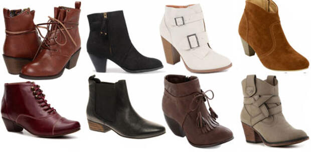 Их называют ботильонами, каблучок часто именуют “cat” (кошачьим). Как ни назови, но это одна из самых популярных моделей у женщин для осени и ранней зимы. Каблук не очень высокий, удобный, устойчивый, что делает сапожки подходящими для повседневной носки. В тренде – скошенный широкий каблук как у «казаков». Высота сапожек – не выше щиколоток, что сочетается с платьями и узкими джинсами. Цвета натуральные (от белого и охры до палового коричневого и шоколадного), материалы – тоже (кожа, замша, нубук).